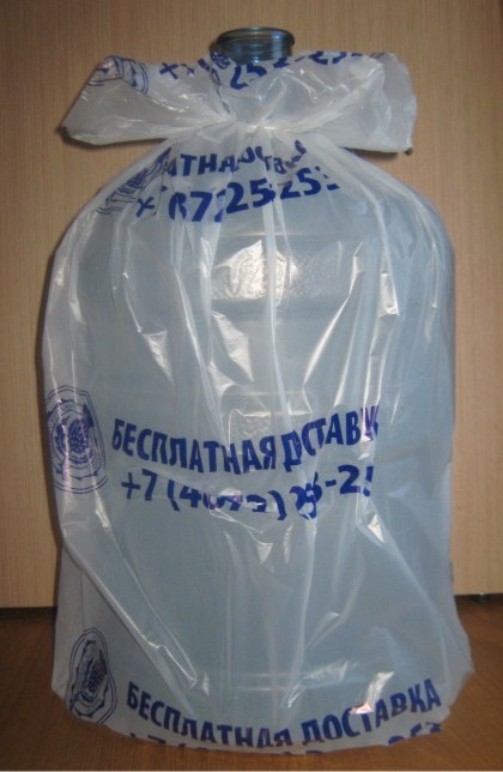 Отметим, краска наносится на пакет таким образом, чтобы сохранять цвета и отчетливость линий на протяжении долгого времени. Пакет для 19-литровой бутыли позволяет сохранить тару в чистоте при хранении и транспортировки, а его низкая цена не ударит ощутимо по бюджету компании. Напоследок заметим, что компания с фирменной продукцией является символом ее успеха и вызывает большее доверие в глазах потребителей, нежели компания без таковой.