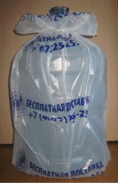 Пакеты для 19-литровых бутылей изготавливаются из полиэтилена низкого давления (ПНД). Плотность пакета от 12 мкм. Пакет размером 30х70 см с боковой складкой (фальц) 16 см. Тираж - от 10000 экз. Печать на пакетах - до 4 цветов. Срок изготовления пакетов 3 недели.